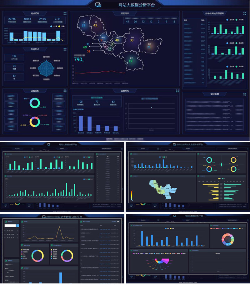 依托用(yòng)戶訪問日志,實現訪問地域、熱(rè)點欄目、頁面價值、忠誠度、實時(shí)訪客等方面的(de)分(fēn)析應用(yòng),以及網站運營數據的(de)可(kě)視化(huà)展示。